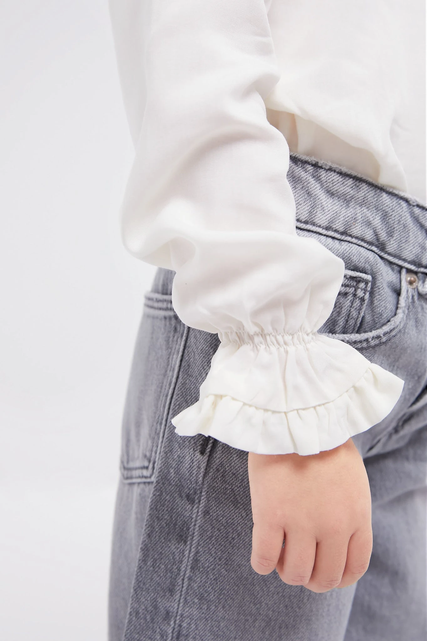 - Long blouson sleeves