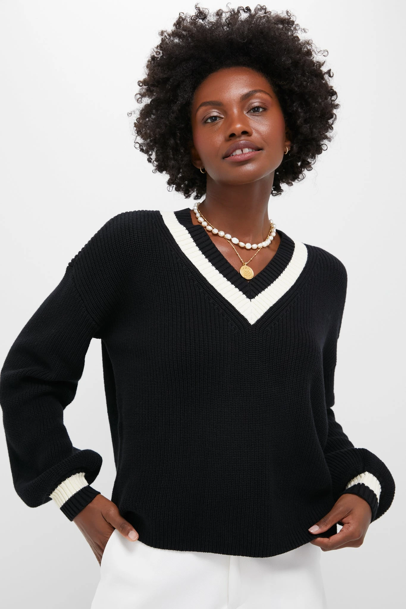 This classic silhouette features feminine balloon sleeves, a contrast V-neckline, and a high quality tight-gauge knit that is buttery soft to the touch. The perfect length for easy tucking, we are pairing this with pants for chilly summer evenings or with a tennis skirt while warming up on the courts.