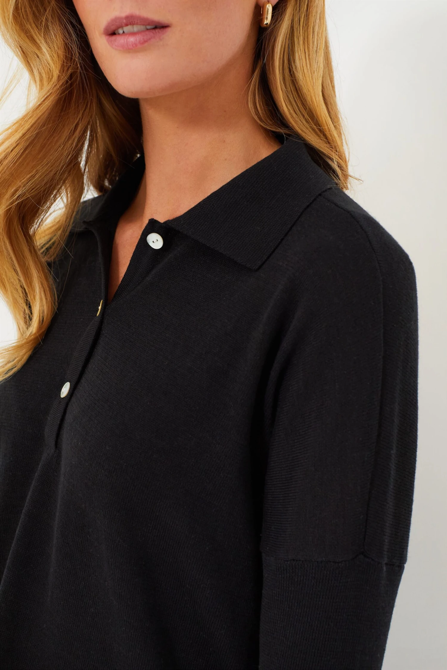 Say hello to your new closet best friend! The Clayton Long Sleeve Knit Polo is an easy, yet elevated, pullover. This top boasts a spread collar, partial front button placket, drop shoulders, and a slightly cropped body that is stylish without compromising comfort. Pair with a mini skirt and sneakers for a lunch date, or with denim and flats for meetings.