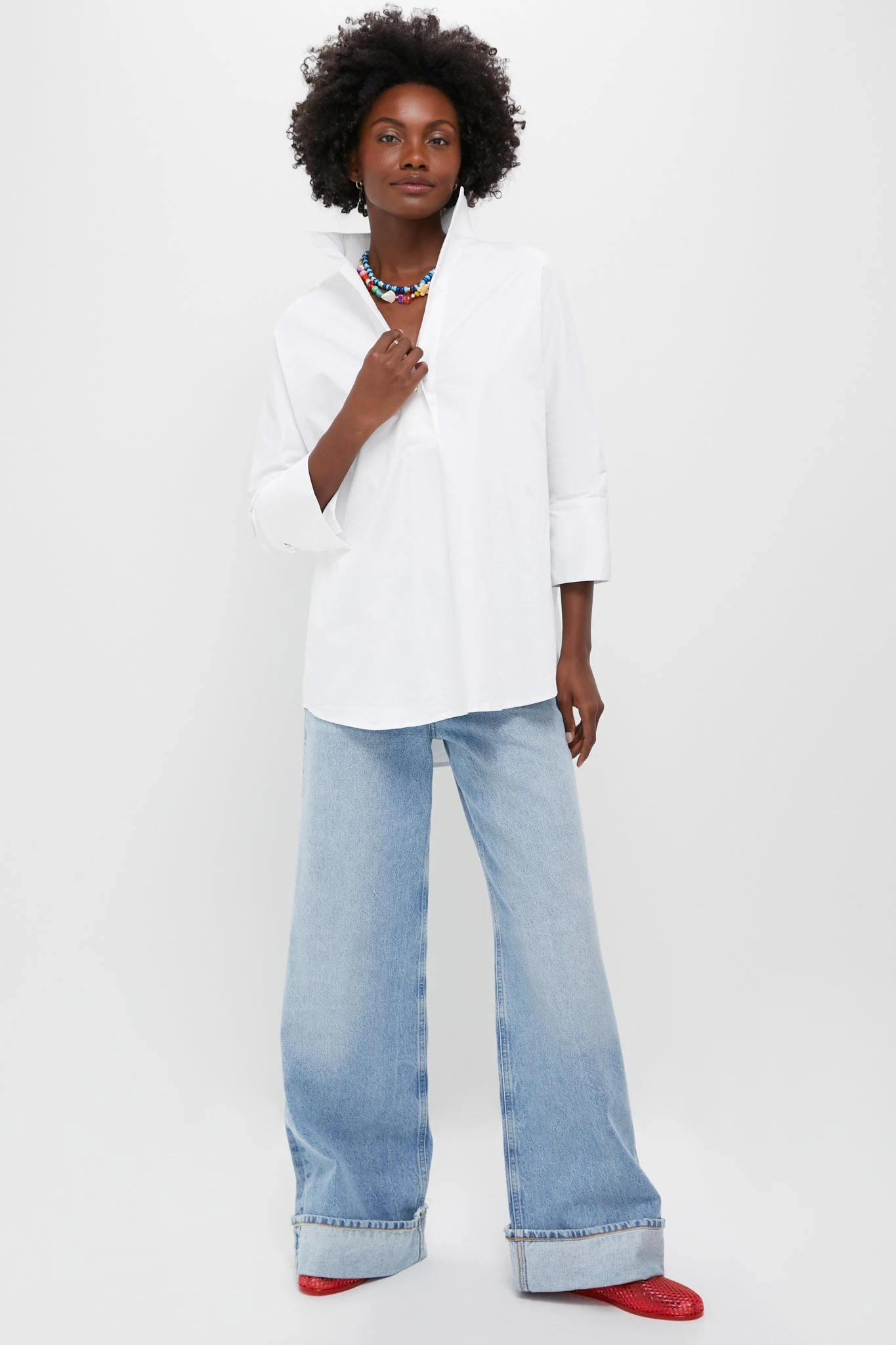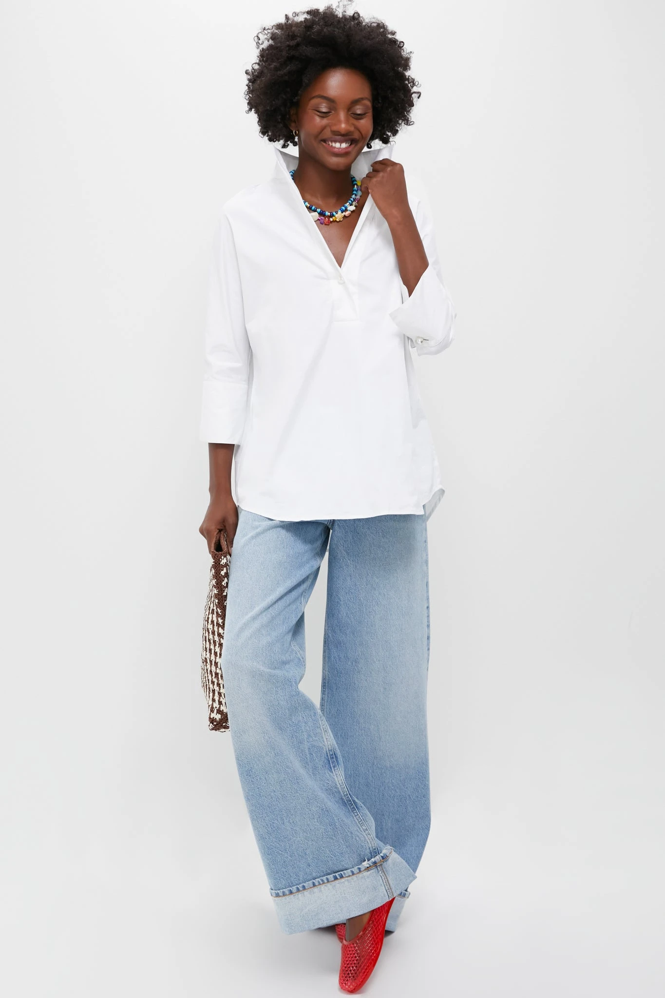Crafted in a flattering silhouette from a crisp cotton poplin, the Blanc Willow Blouse is a must-have for year round dressing! Featuring a button front half-placket, folded collar, and high-low hem, this pullover pairs easily with everything from denim to leather pants season after season.