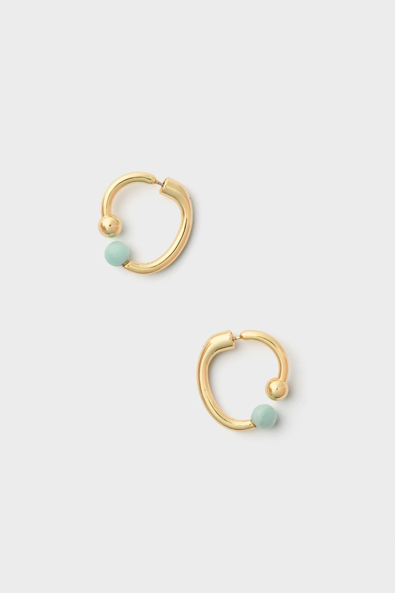 The Alexandra Hoops are a modern blend of minimalist design and natural accents. Featuring a polished gold finish paired with soft blue spherical ends, they offer a fresh take on a classic hoop. Lightweight and easy to wear, they’ll add instant personality to tees, dresses, or anything in between.