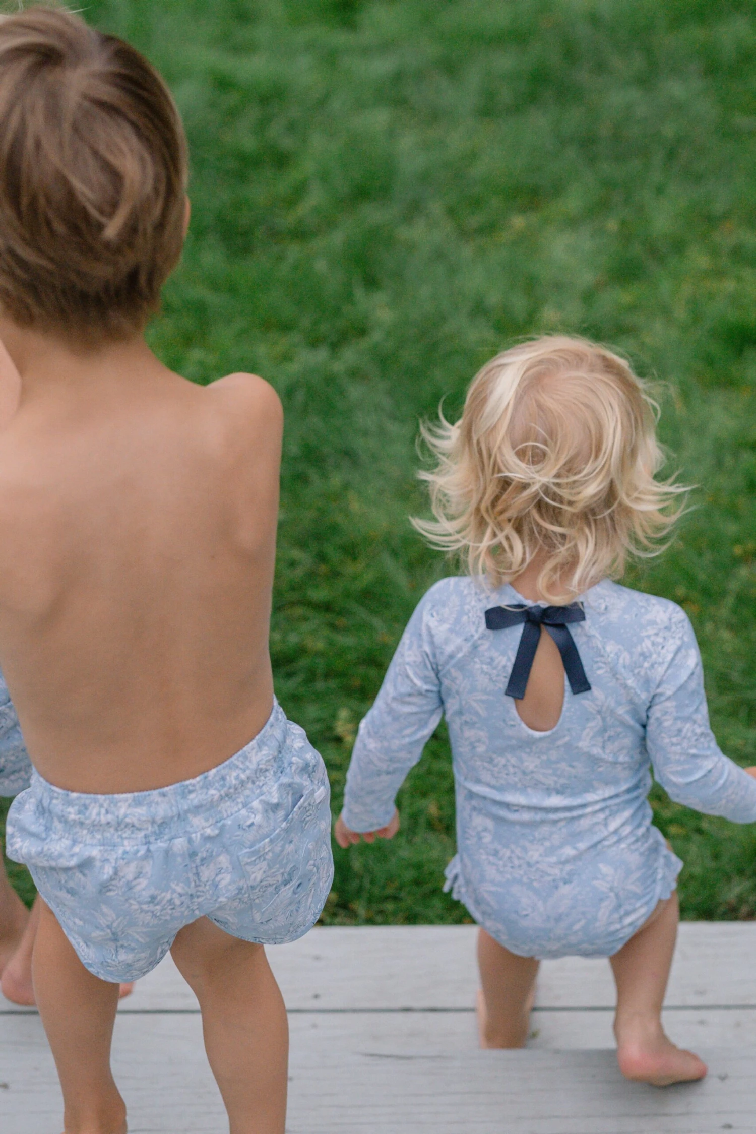 One of minnow’s best selling styles, the Boys Safari Toile Boardie Shorts hit at the perfect length for flair and function. Featuring an elastic waistband and inside stretch liner to add to the comfort and mobility, this swimsuit is perfect for any activity. Match yourself and your littles together with the girls and women’s Safari Toile print suits!