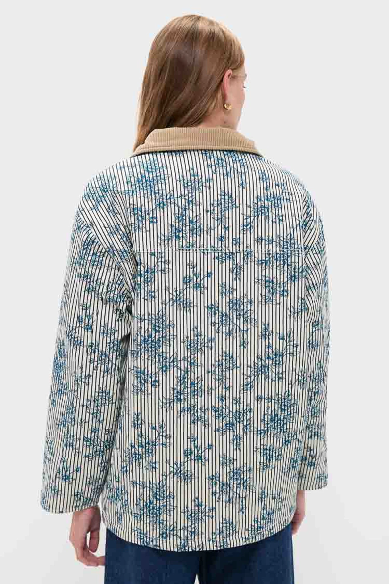 This oversized barn jacket features Italian stretch cotton denim in a delicate cornflower toile, accented with contrast cuffs, collar, and oversized patch pockets. Fully lined for comfort and finished with a toggle front closure, it’s perfect for layering over casual or chic outfits—pair with tailored trousers or your favorite jeans for an effortlessly fashion-forward look.