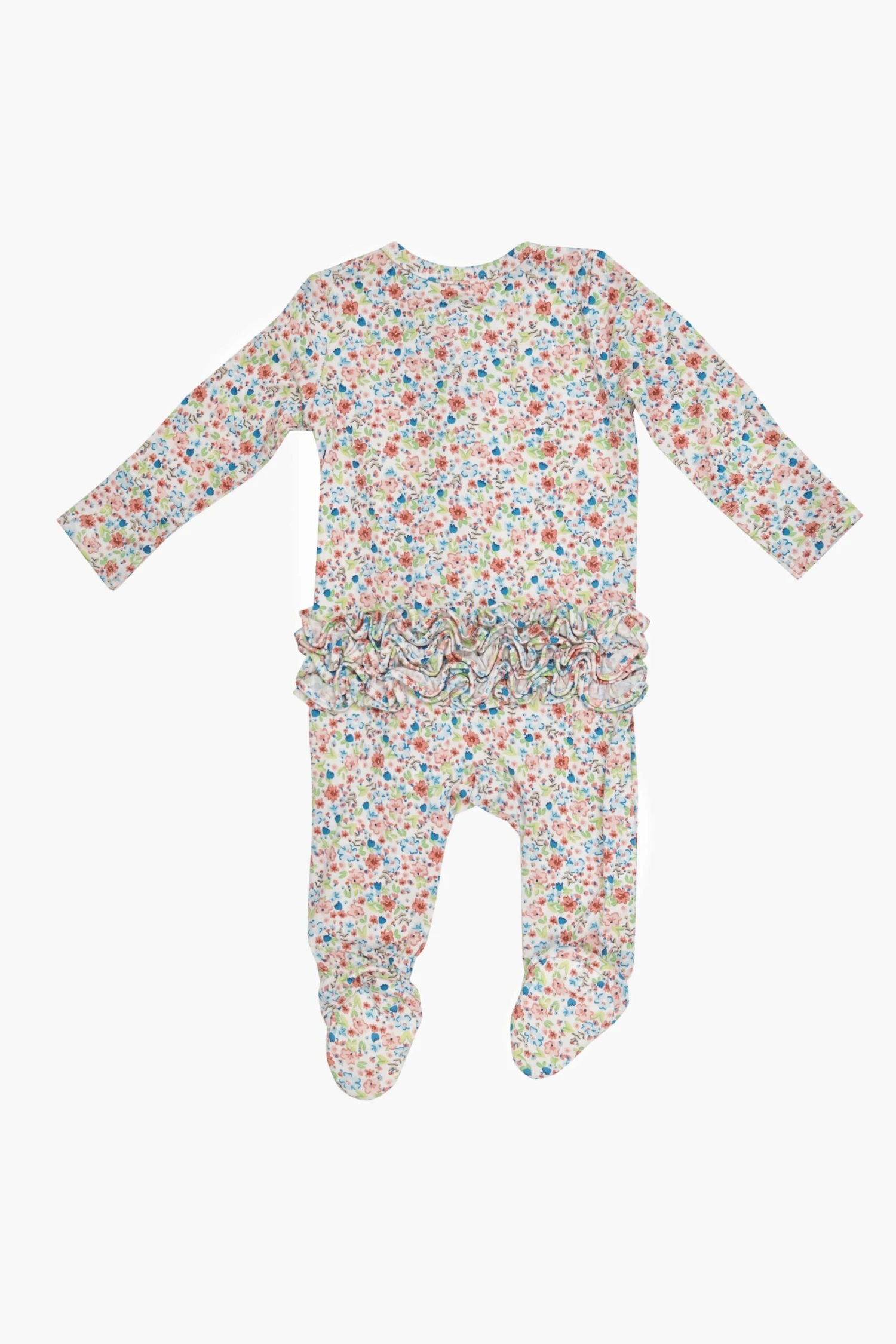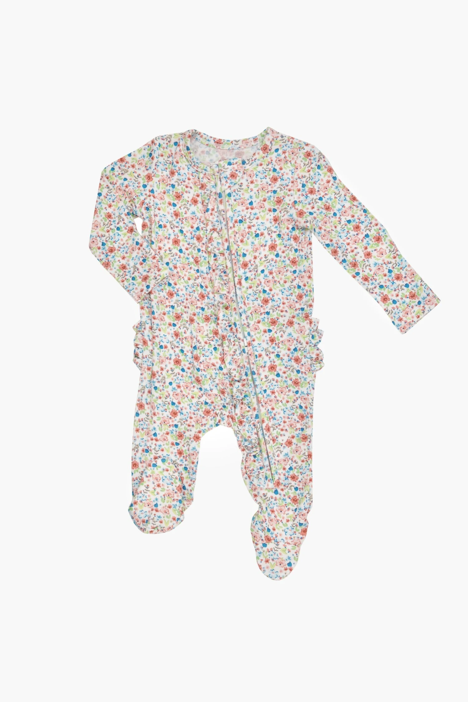 The Dainty Floral Ruffle Front Zipper Footie makes changing your baby a Snap! (or as we like to say a Zip!) Crafted from super soft bamboo fiber fabric, it boasts fold-over cuffs to prevent accidental scratches, fleece lined footies for extra coziness and ruffle detail at back adds an adorable touch. Whether reading a bedtime story or having some early morning playtime, your kiddo is sure to be extra cuddled up in this one-piece.