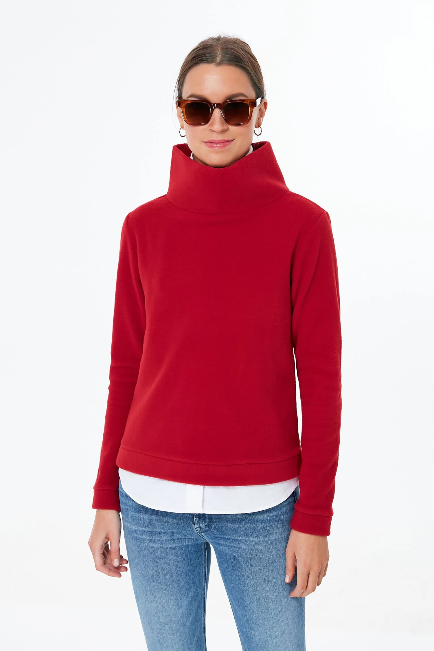The Rhythmic Red Colorblock Park Slope hits just below the waist, and features a funnel neck, a banded detail, and a cozy fit. This style is made from a non-iron vello fleece and is perfect for keeping you warm during outdoor adventures this season. We love to wear this to sit by the window and watch the snow fall, or under a puffer jacket to brave the cold.