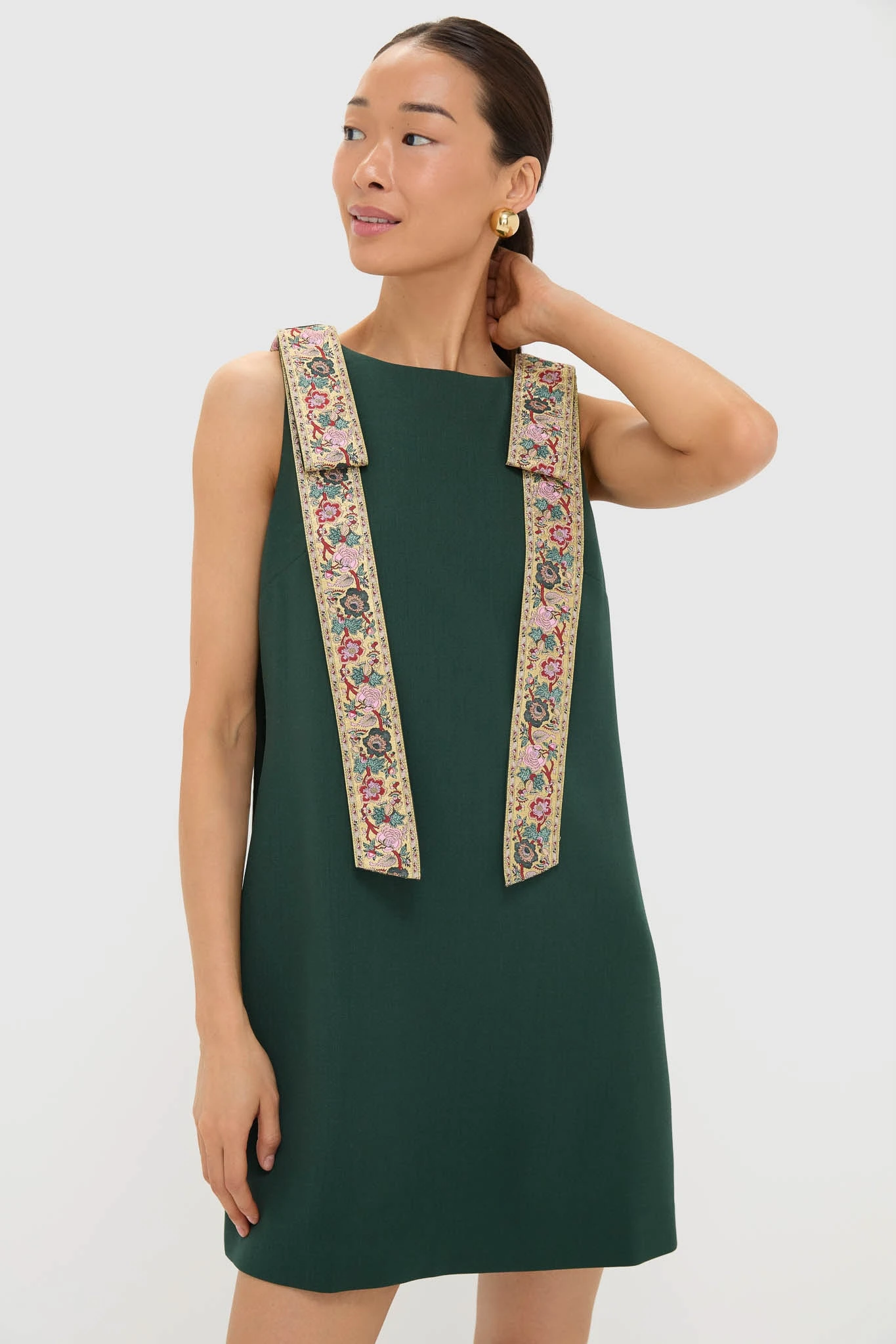 The Rosie dress is a chic shift silhouette with jacquard bows on the shoulders for an elegant touch. Style with heels and a clutch for date nights, cocktail parties, and weddings.