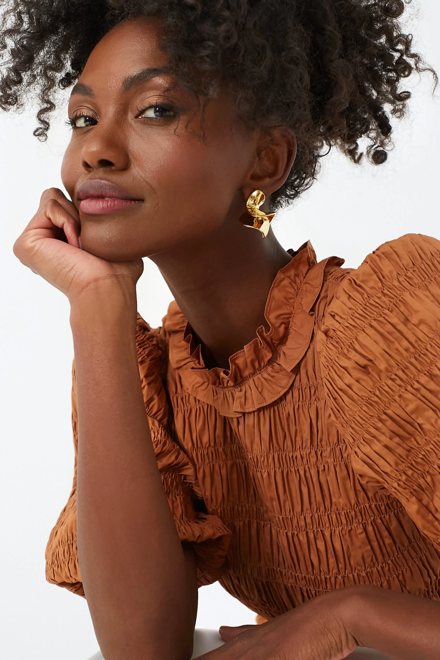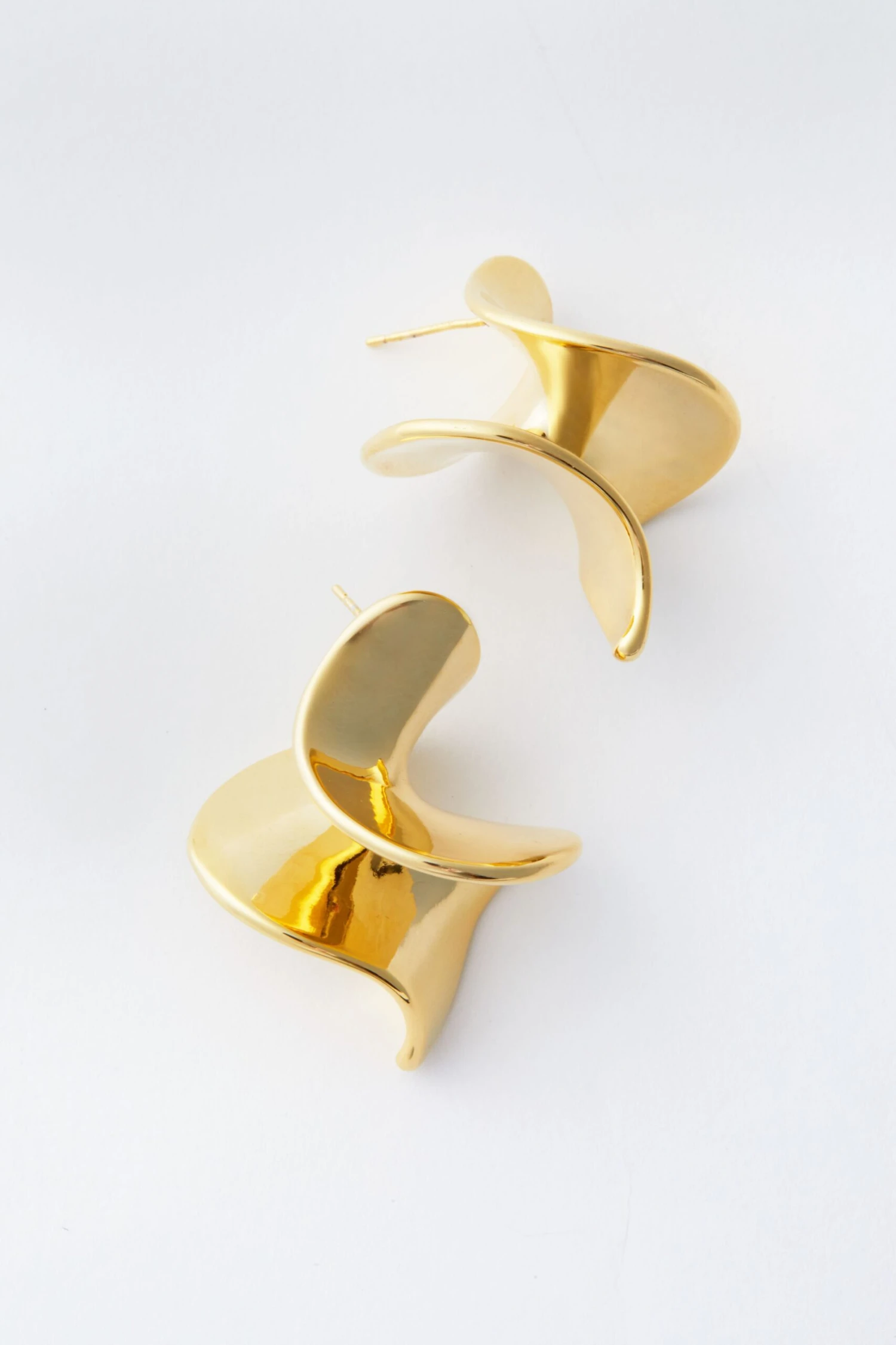 The Solana Earrings deliver a gorgeous swirling drop silhouette in a sunny golden hue to brighten any ensemble. Complete with a comfortable post back closure to ensure all-day wearability and comfort, these beauties are versatile and timeless! Perfect for everything from desk to drinks, we are styling these with LBDs, power suits, button-downs, and more!Â
