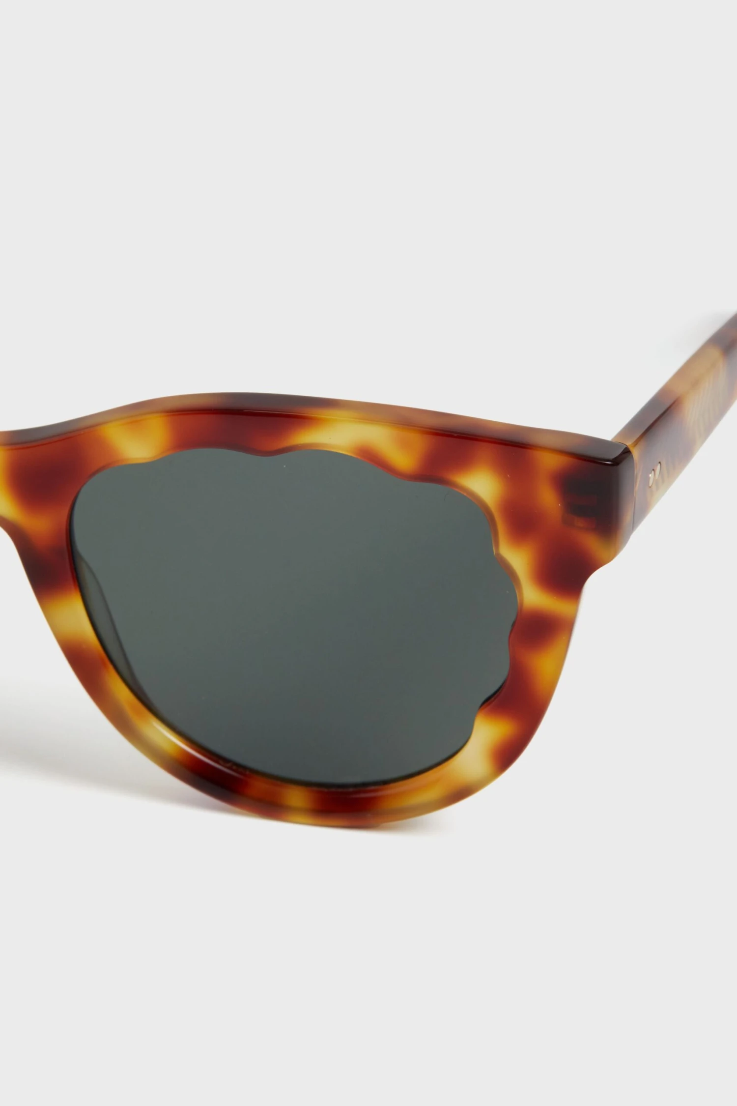 Roundabout elegance. The Hawksbill Ellie Sunglasses are small yet distinct silhouette with a whole lot to say. A true everyday classic, adorned with scallop detailing around the lenses for a little something special. Elevated and refreshingly wearable, this is a frame you’ll reach for over and over again.