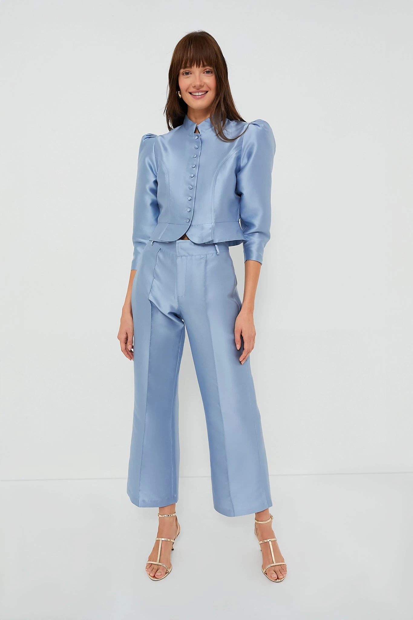 The Niagara Blue Amaoko Smart Jacket is distinguished by its impeccable vintage-inspired cut and a well-defined silhouette. Featuring a satin like finish, puff three-quarter length sleeves, and a peplum hem, this number guarantees to garner you a compliment or two! Style with the Niagara Blue Yoshitomo Smart Pants as a set to wear to your engagement party or pair with a pop of color pants for any formal occasion coming up.Â