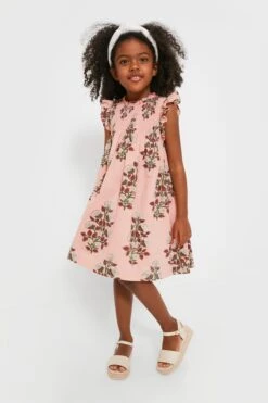 Pretty in Pink! Your little girl is about to look absolutely adorable in the Bouquet Floral Stevie Dress. A gorgeous spray of white blooms on a vibrant vine pops off the dusty pink ground, this flock favorite features a ruffle at the neckline and arm, smocking at the chest and an invisible zipper at back. Pair with a headband for Sunday brunches or picture day at school, and wear it with sandals for fun in the sun.