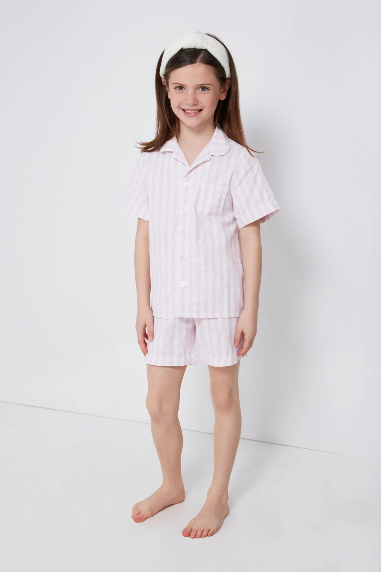 A springtime essential, the Pink Gingham Short Set is the most darling sleepwear. In a classic print and finished with pearl buttons, this set is made from the finest quality cotton and the fabric is brushed for added softness, getting cozier after each wash. Tuck your little one in with love and send them off to dreamland with these PJs!