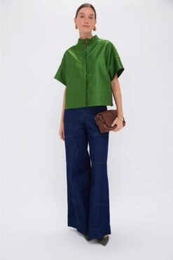Green Dupioni Trapunto Stitch Sofia Shirt