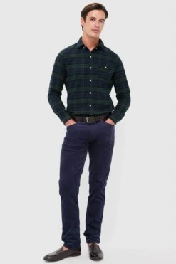 Marine Layer Navy Green Gingham Stretch Selvage Shirt