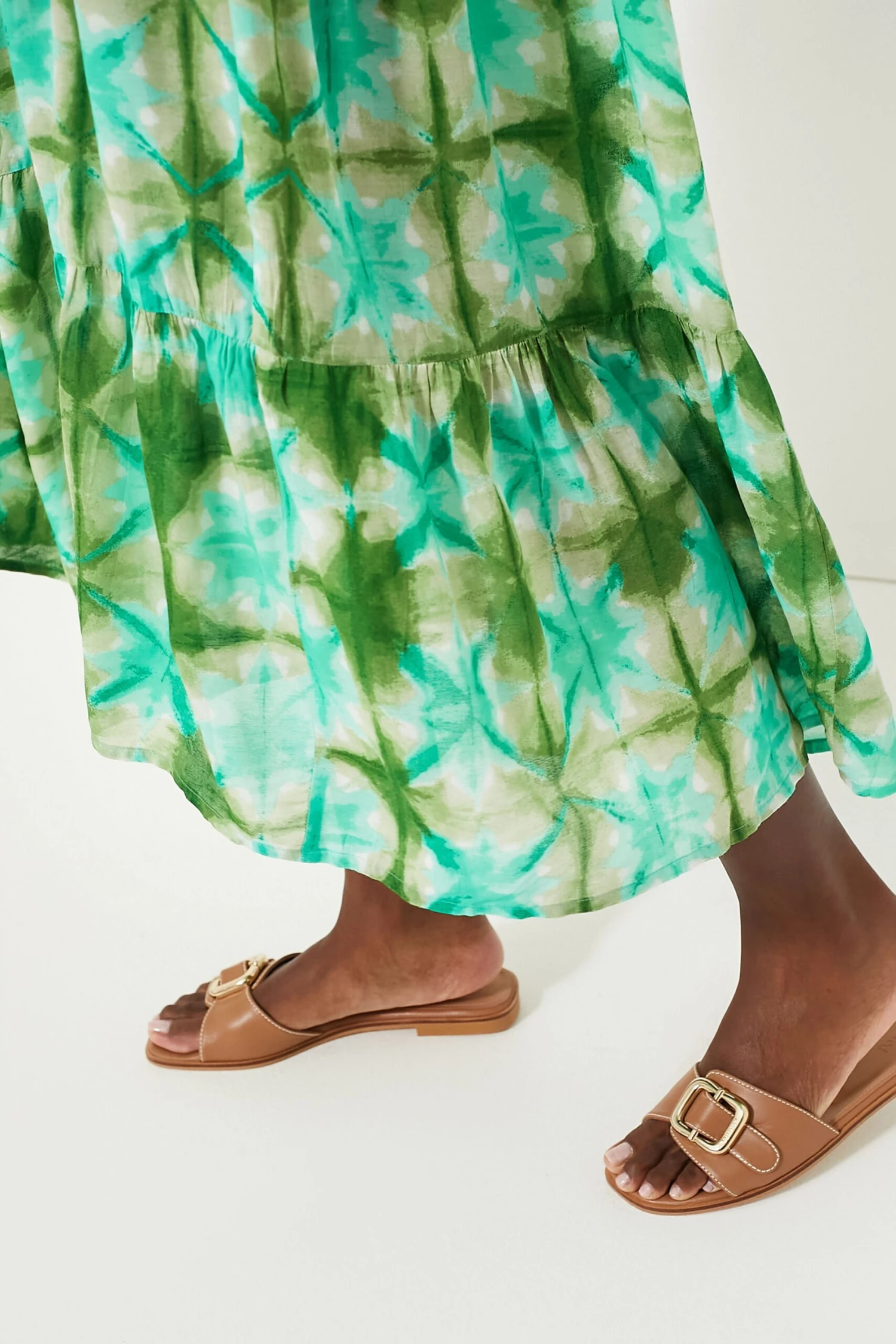 The Seafoam Medallion Salty Paloma Caftan is an eye-catching, elevated beach style. This maxi boasts a V-neckline with tassel self-ties, a tiered skirt, and a retro tie-dye pattern. Perfect for the beach to the bar, simply pair this with sandals or espadrilles and a tote!