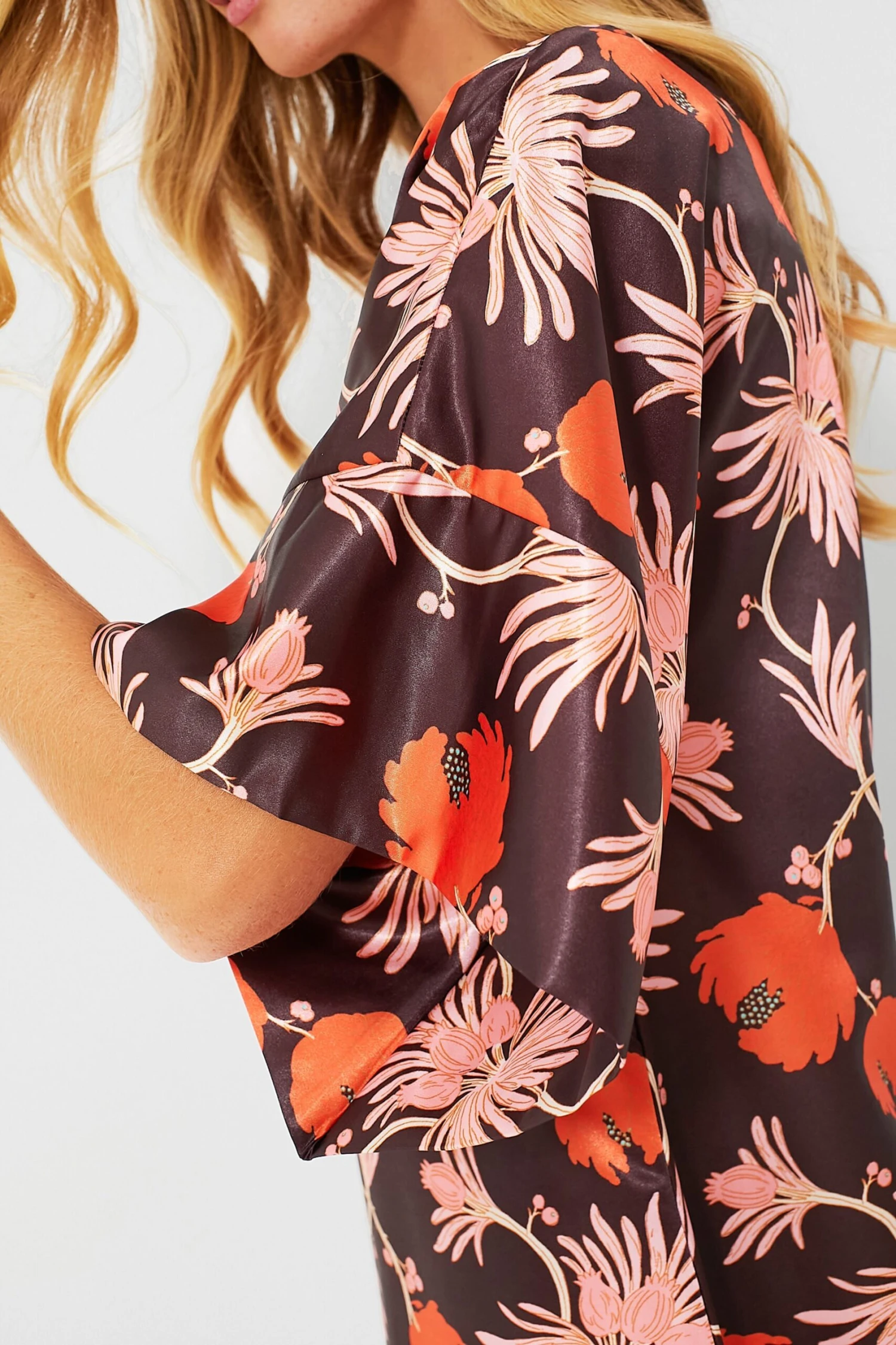 - Three quarter length butterfly sleeves